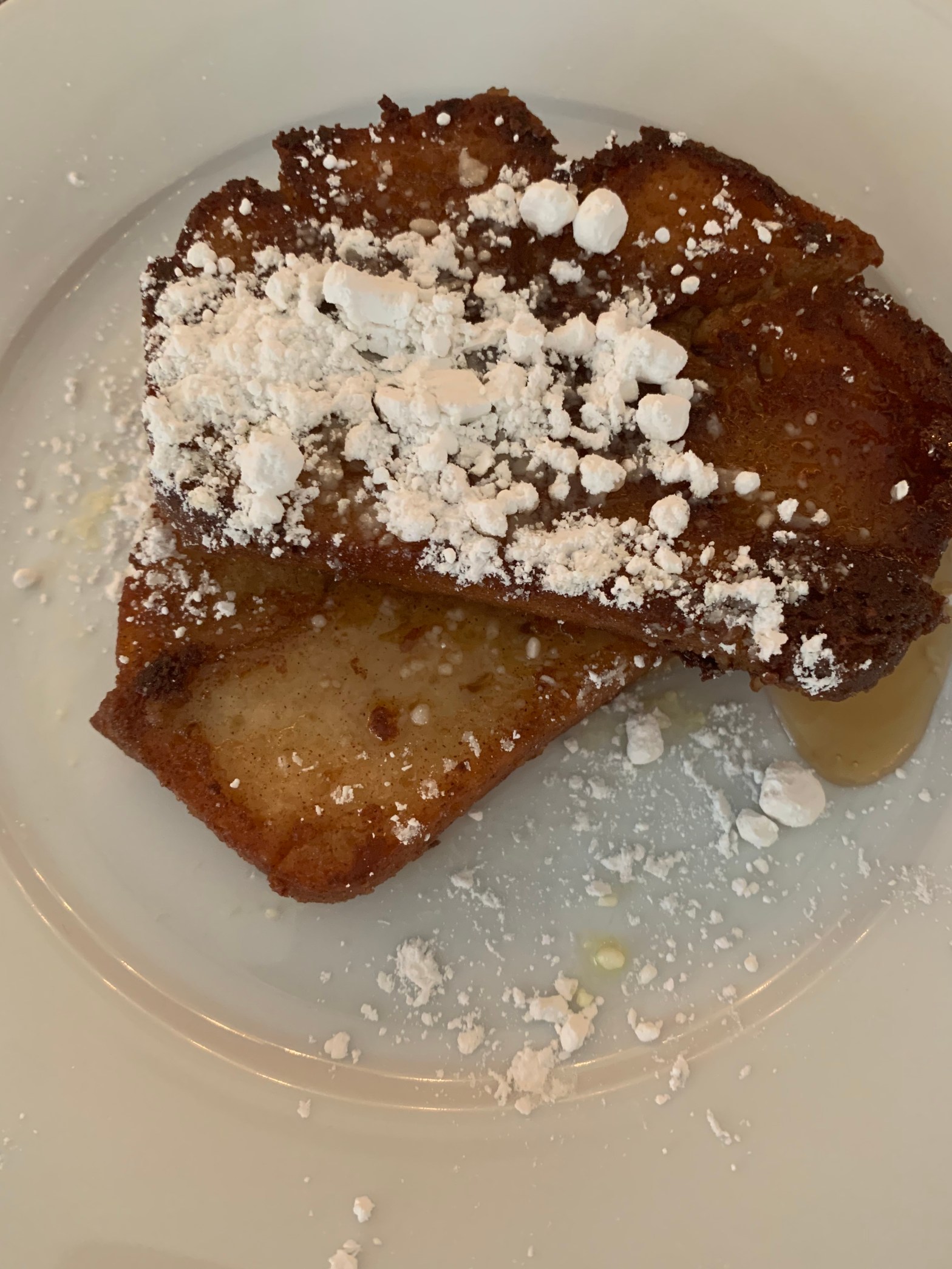 - Serve with powdered sugar and maple syrup, and berries or my favorite applegate sausages if desired.