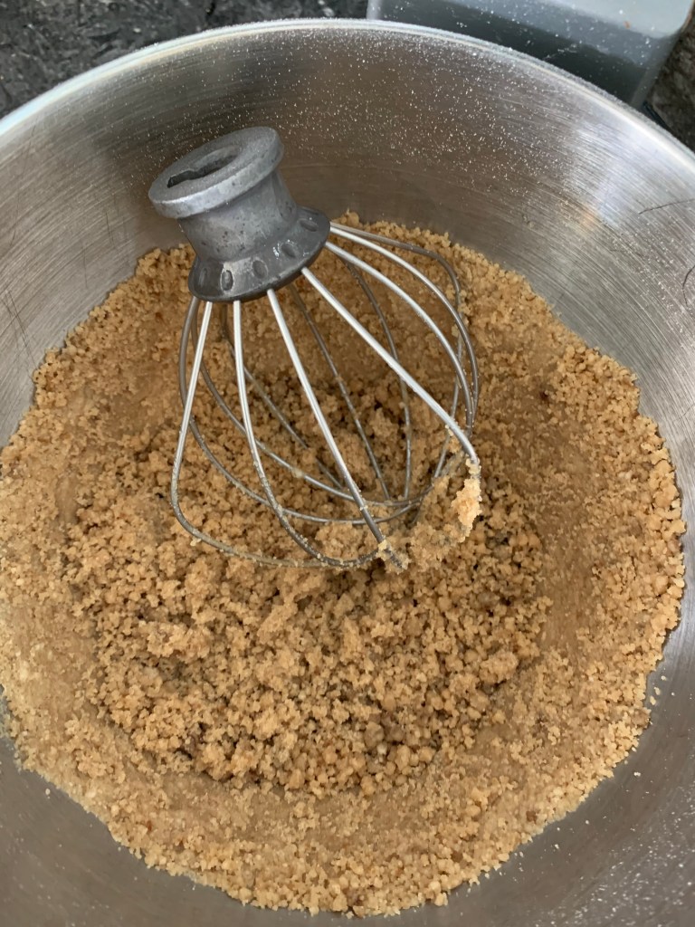 - In large bowl, mix all of cookie crust ingredients till a crumbly dough forms.