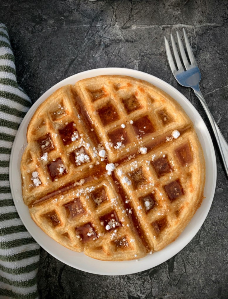 This recipe is perfect for a relaxed Saturday with some sausage. Just dump your ingredients together, mix, and put in a waffle iron.